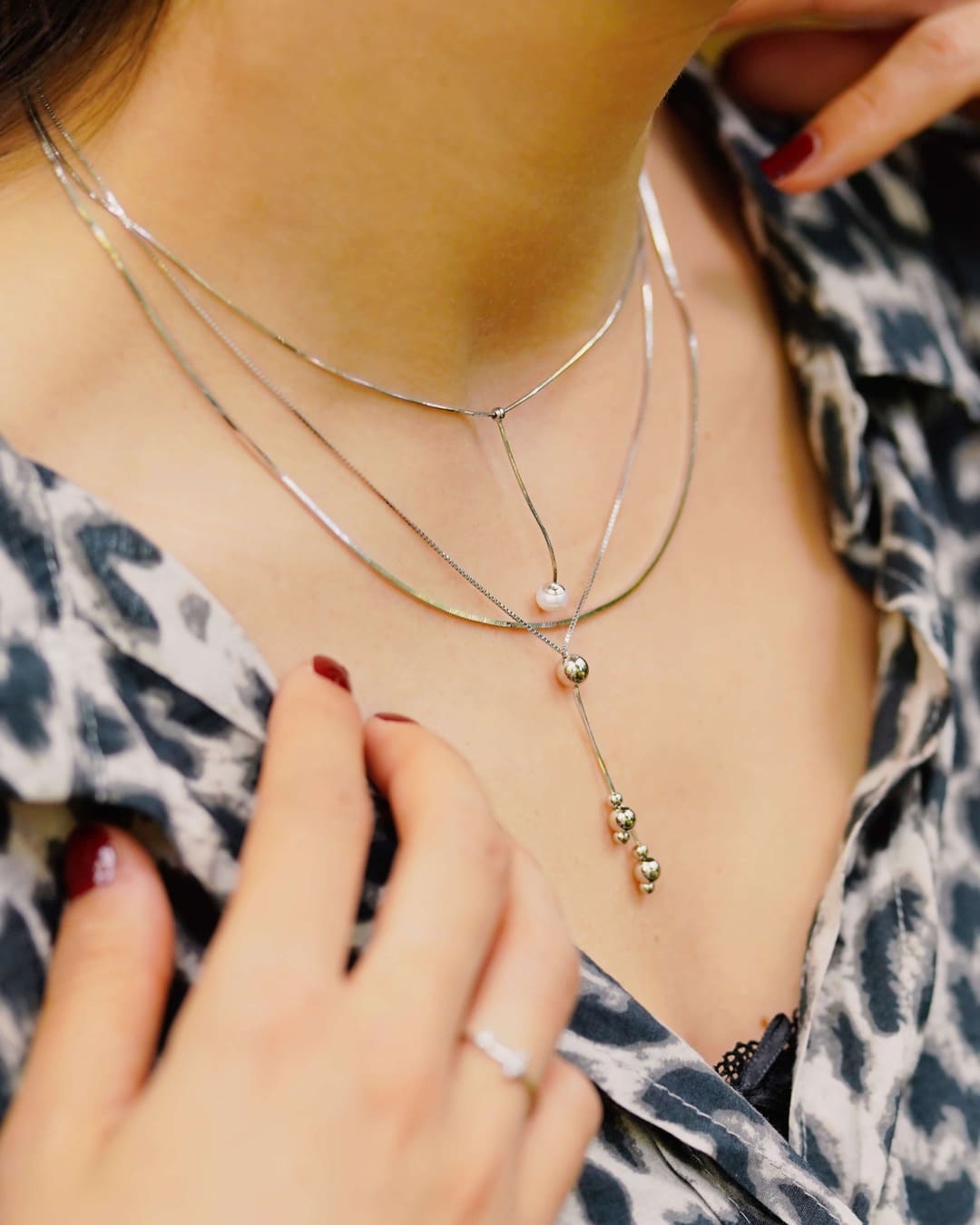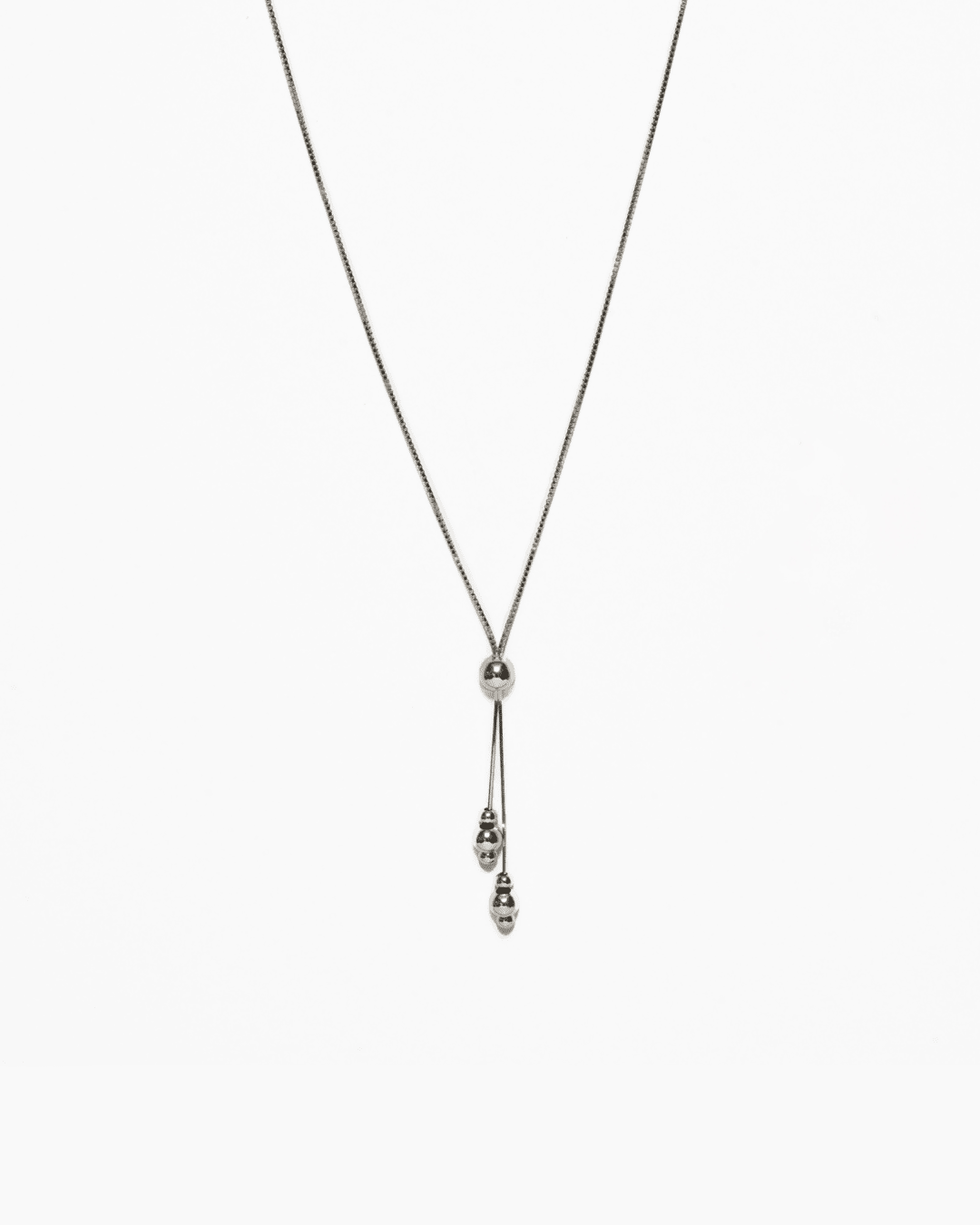 Materyal: 925 Ayar Gümüş. Tasarım Tipi: Toplu Zincir Kolye. Öne Çıkan Özellikler: Parlak yüzeyli asimetrik toplar, konforlu ince Venedik zincir yapısı.