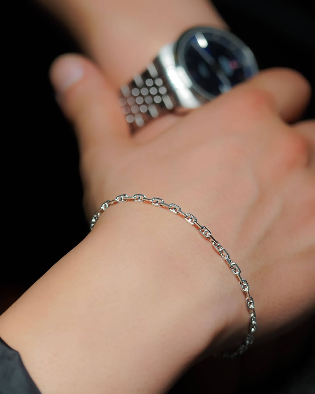 Stil Notu: Zent Bileklik, kendine has dokusuyla tek başına güçlü bir stil vurgusu yapar. Özellikle Oslo (ince dikdörtgen zincir) veya Venedik gibi daha düz formlarla birleştirildiğinde, geometrik bir ritim ve zengin bir görsel katman oluşturur.